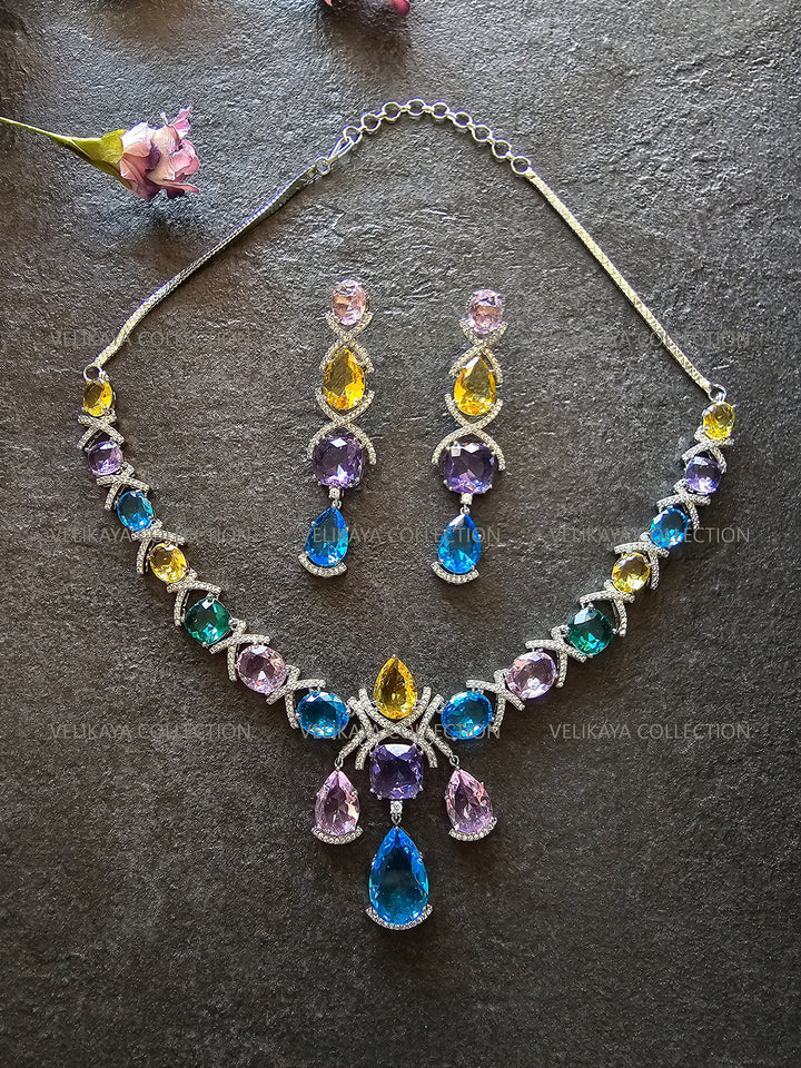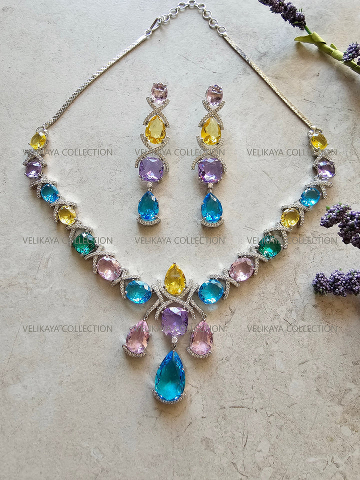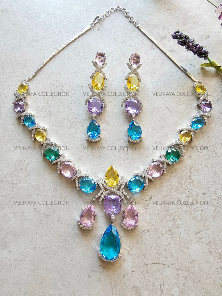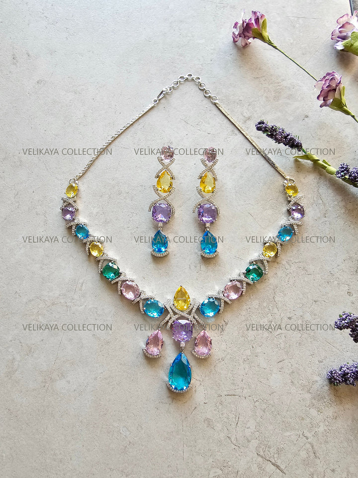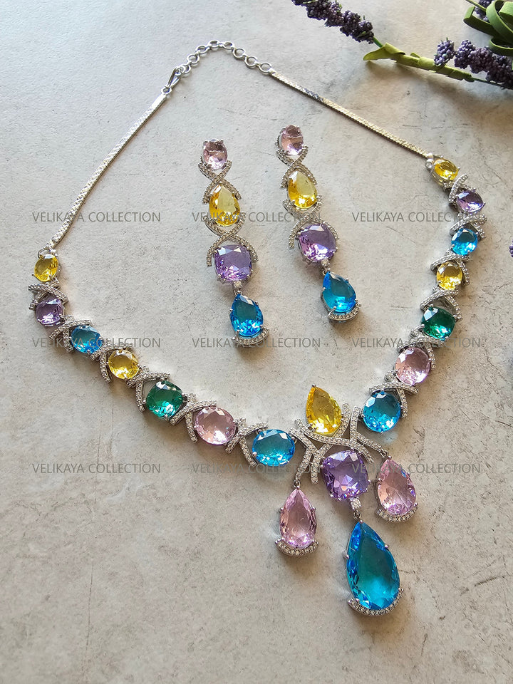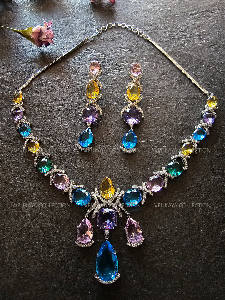 Rainbow Crystal Necklace & Earrings
