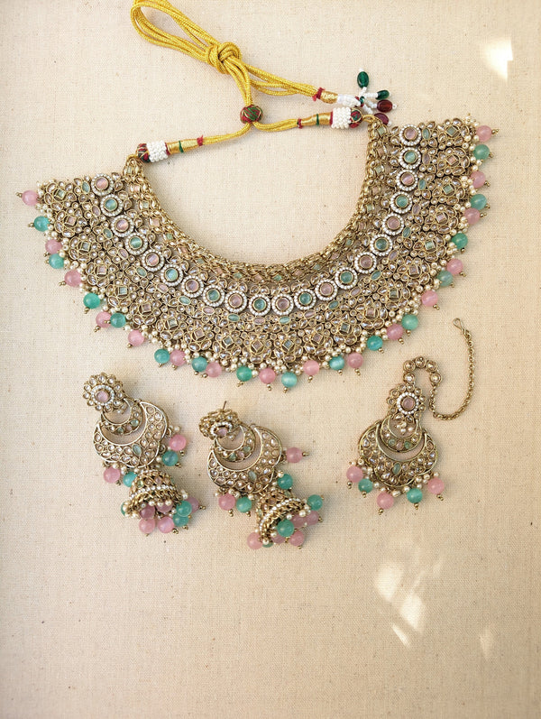 Khushi Mint Pink Bridal Necklace Jhumka Tikka
