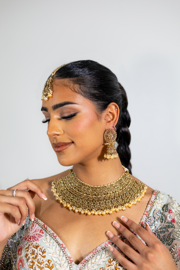 Shanaya Champagne Indian Bridal Necklace Earrings Tikka Set