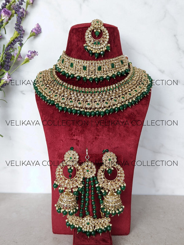 Ada - Green Wedding Necklace Jhumkas Tikka and Pasa