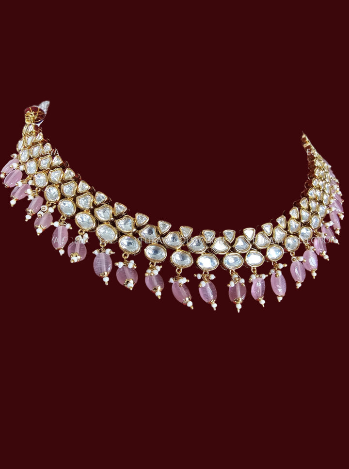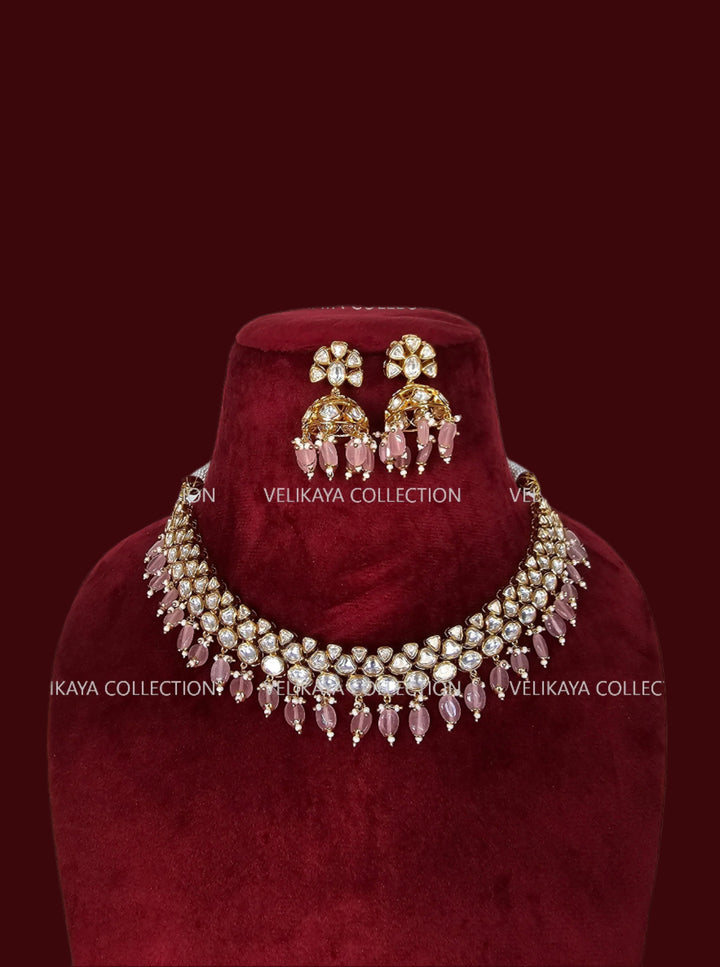 Amira Kundan Choker Necklace & Jhumka in Pink