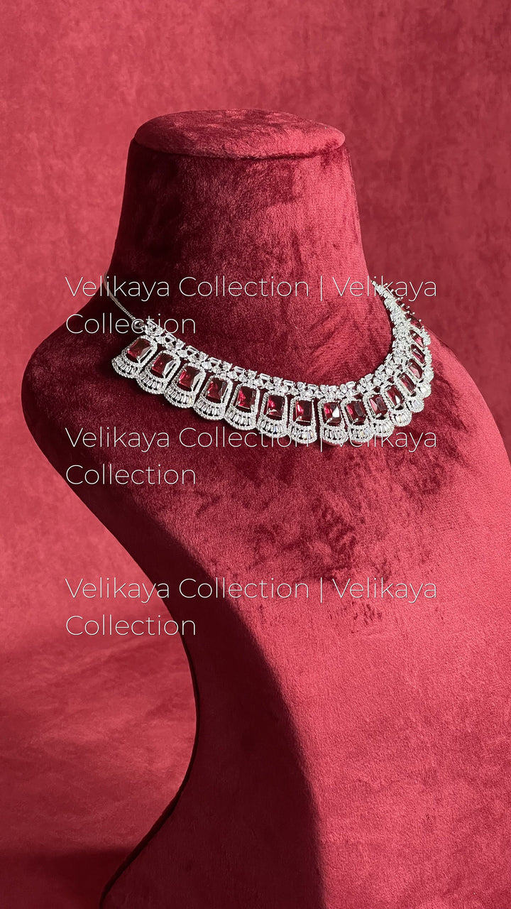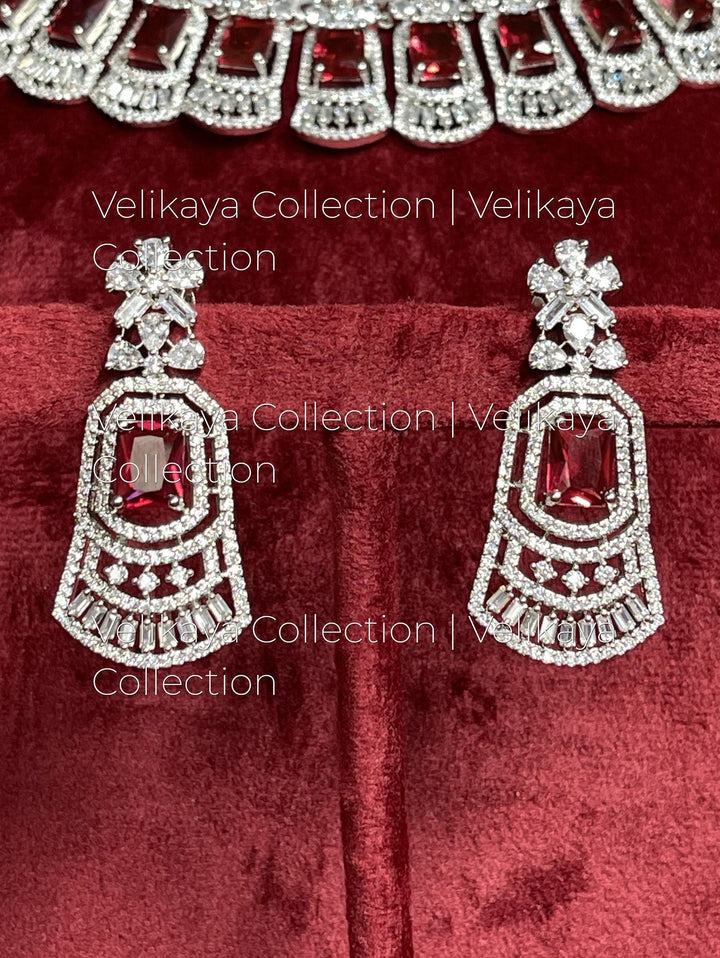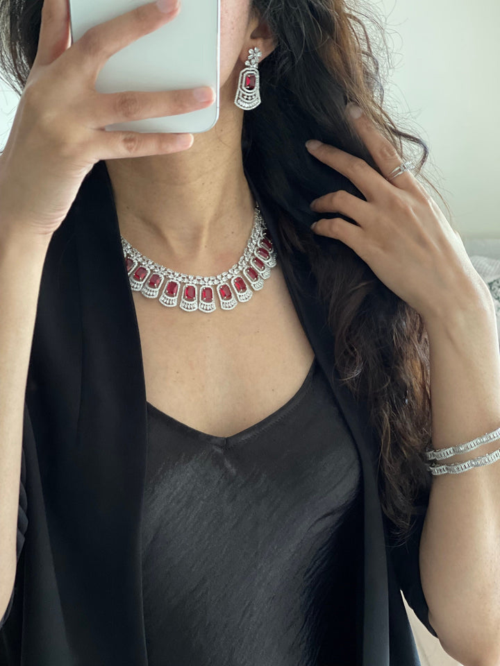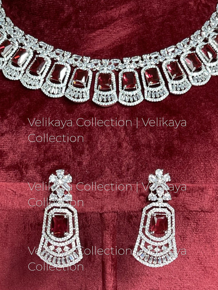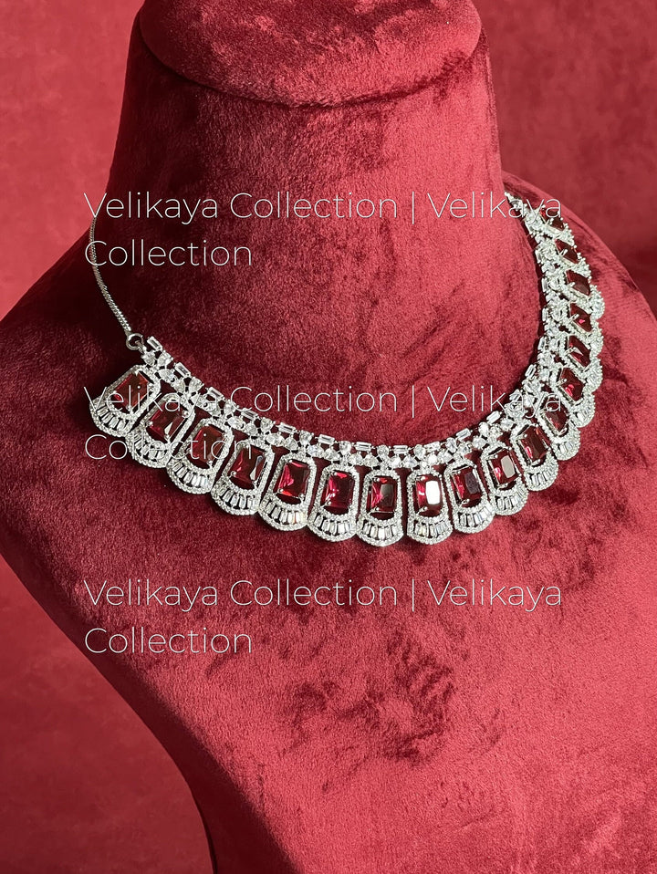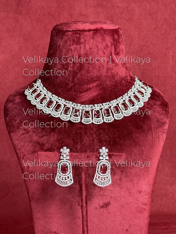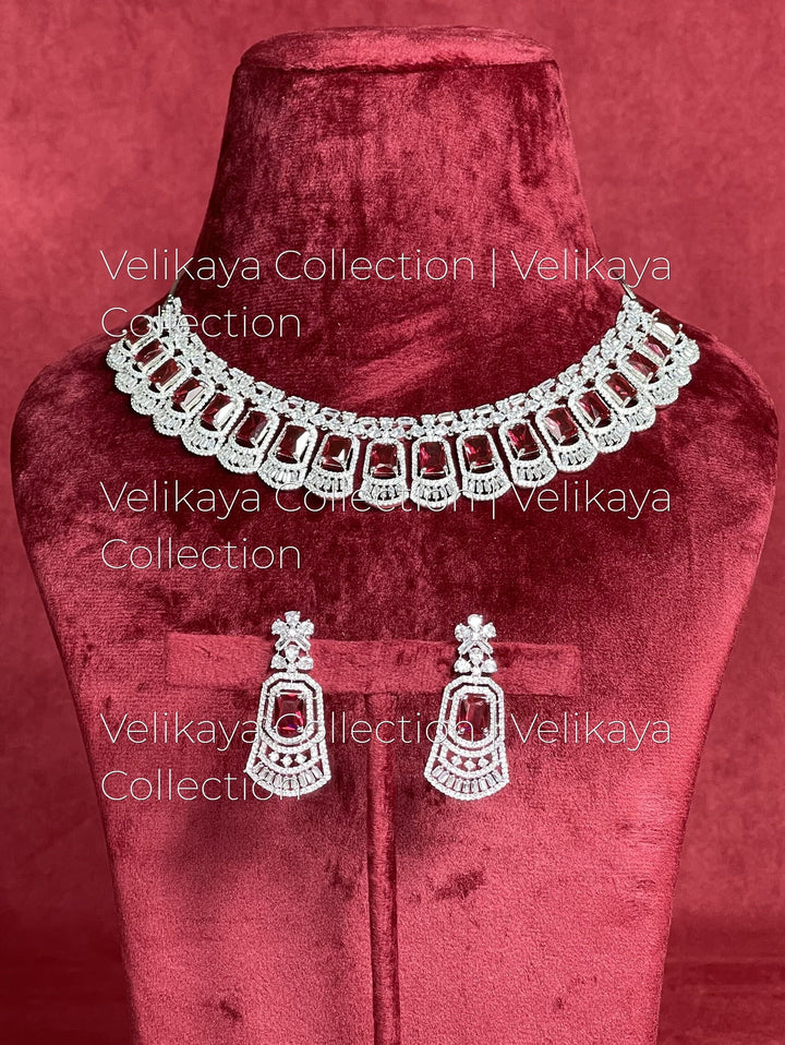 This beautiful American diamond necklace set is handmade with high quality Cubic Zirconia or American diamonds, silver rhodium plating and superior craftsmanship. Pair with a beautiful pasa and tikka from our Diamond collection for a full glam look.