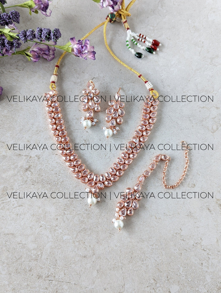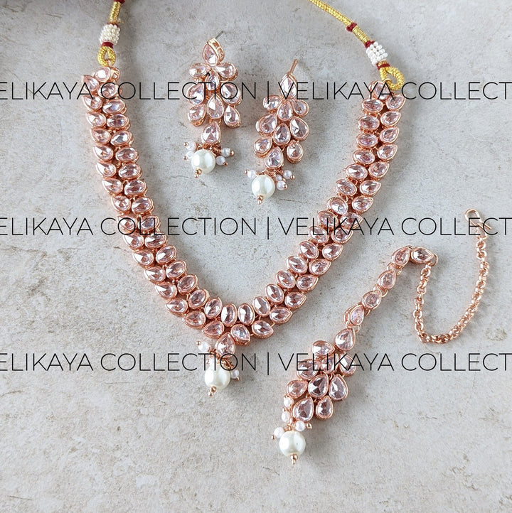 Ellie Rose Gold Plated Necklace Earrings and Tikka