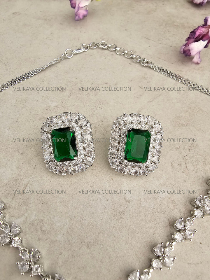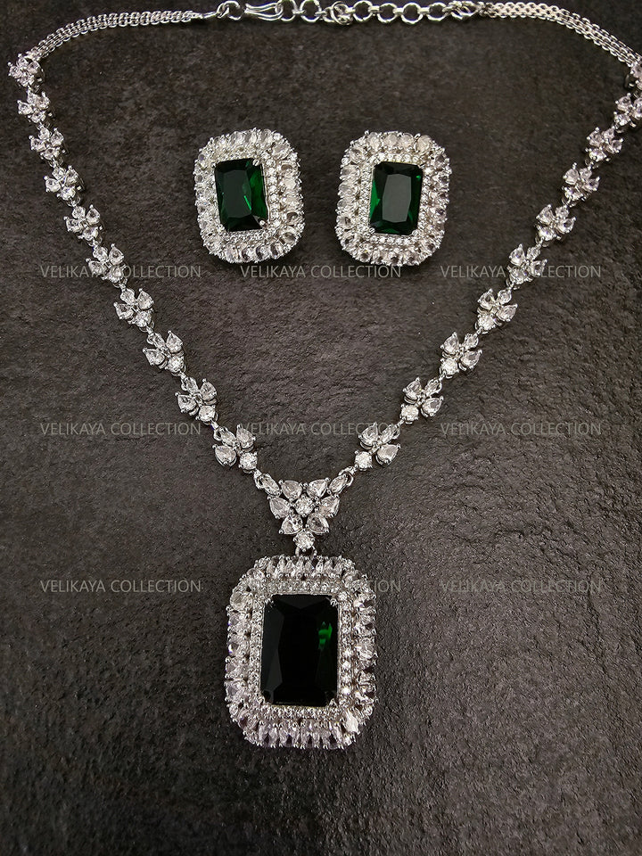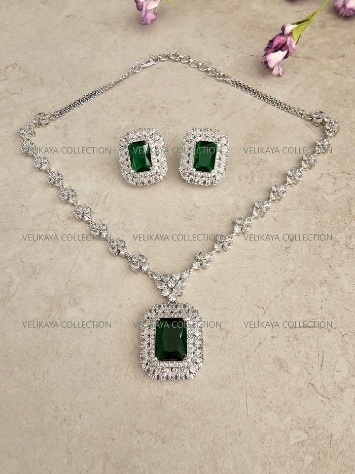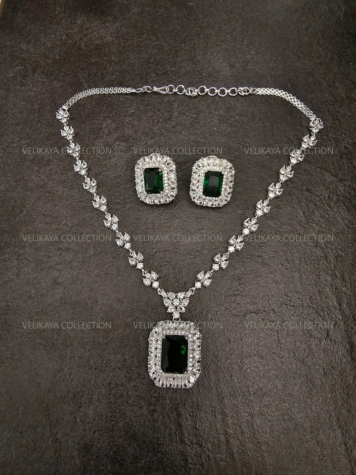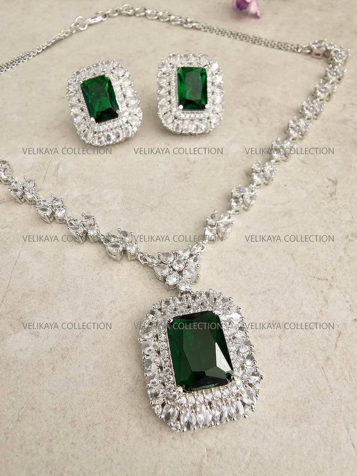 Helena CZ Diamond Emerald Green Pendant Necklace Set