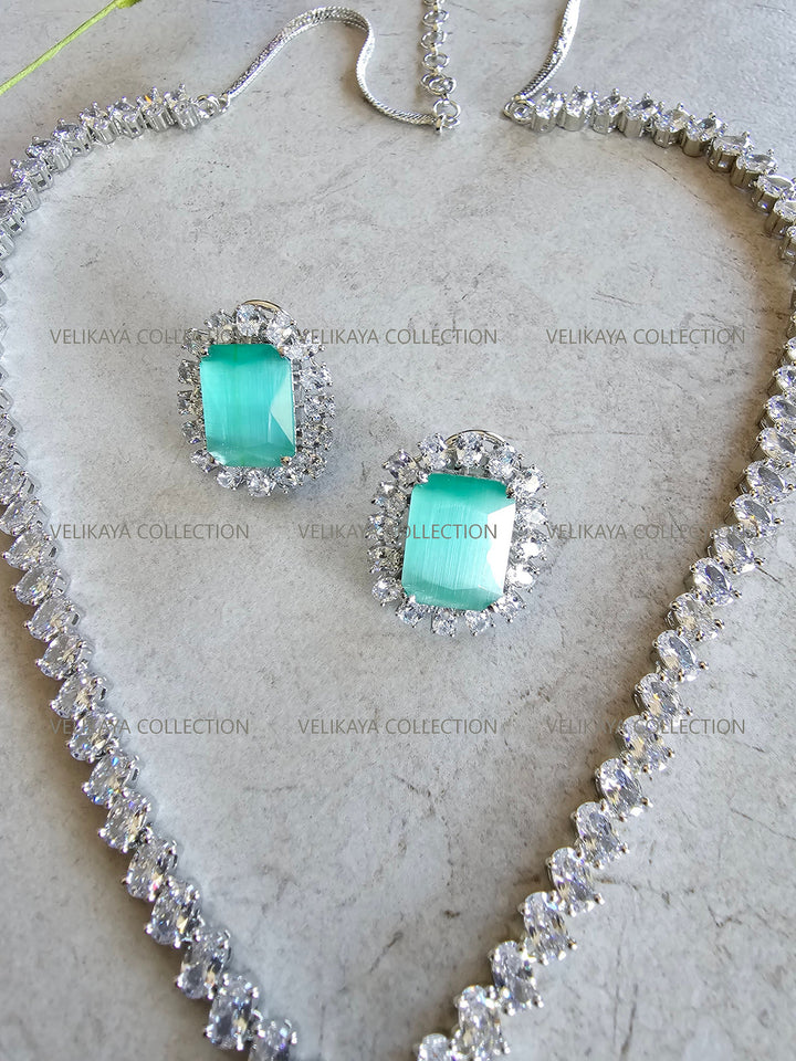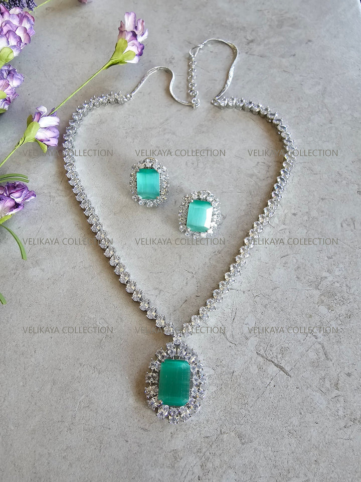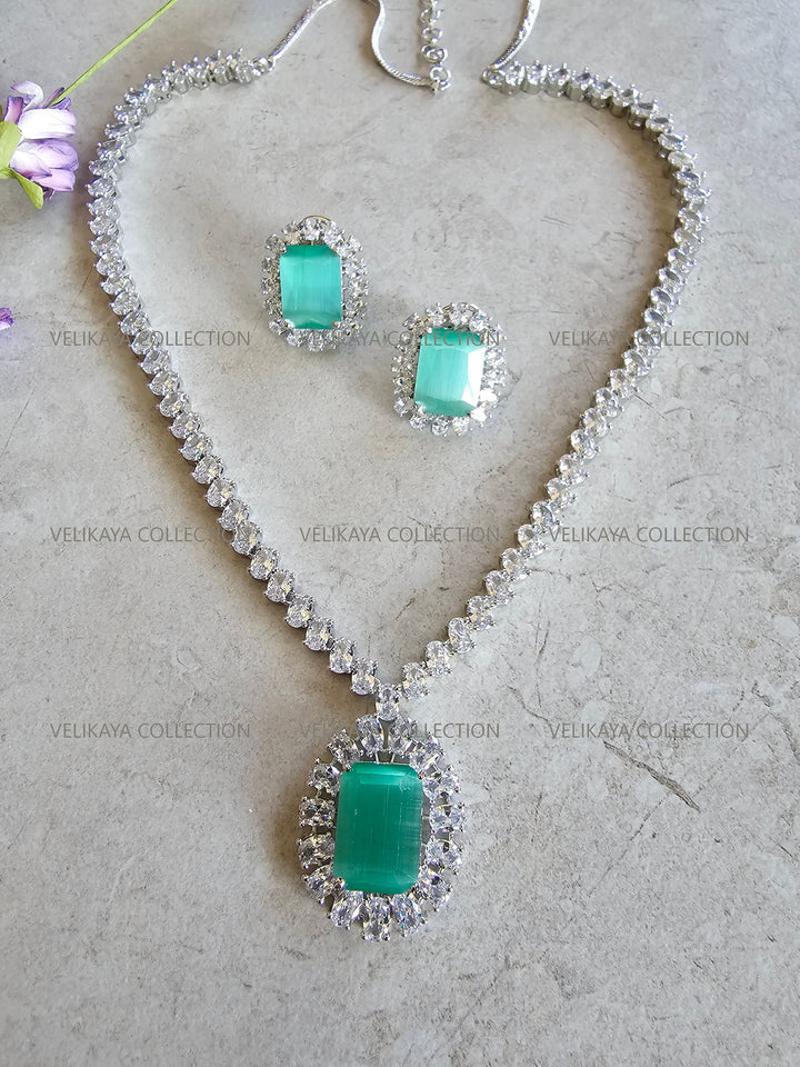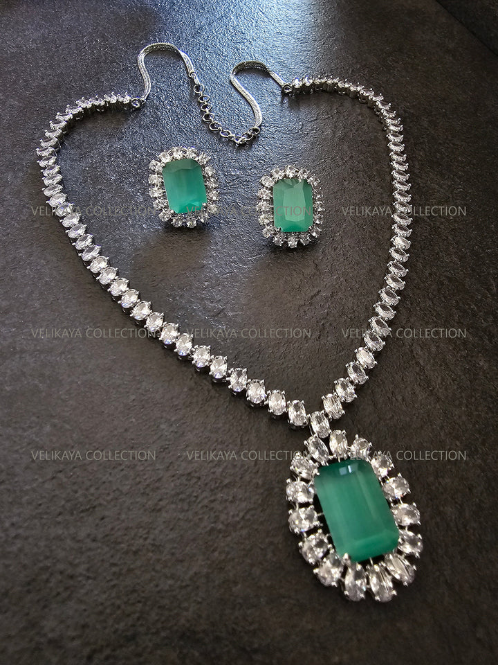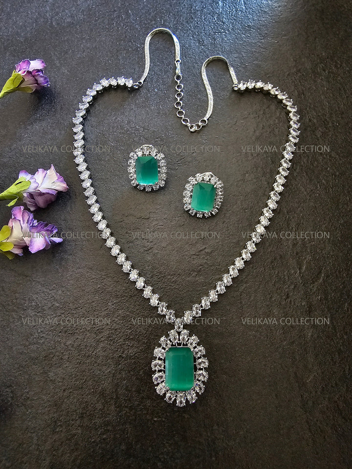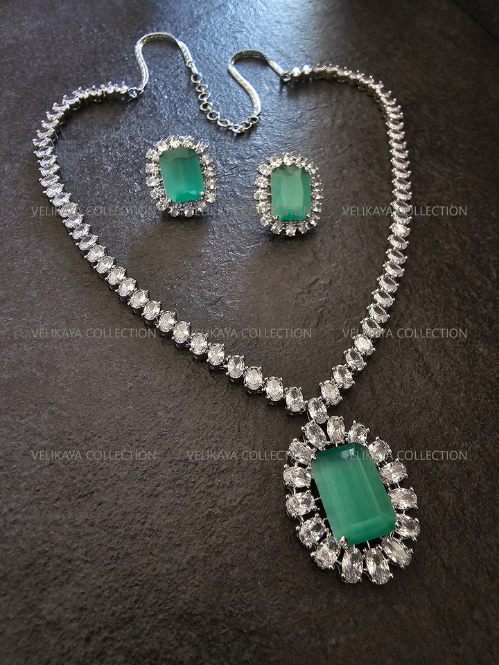 Handmade necklace with brilliant AAA grade cubic zirconia or American diamonds and premium silver plating, set in an elegant design.