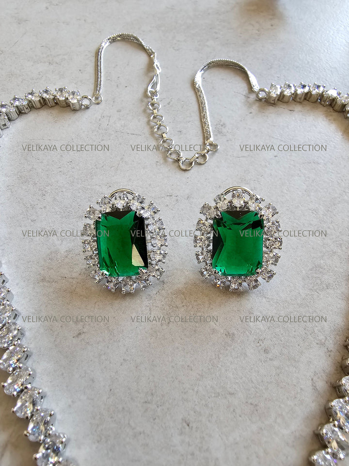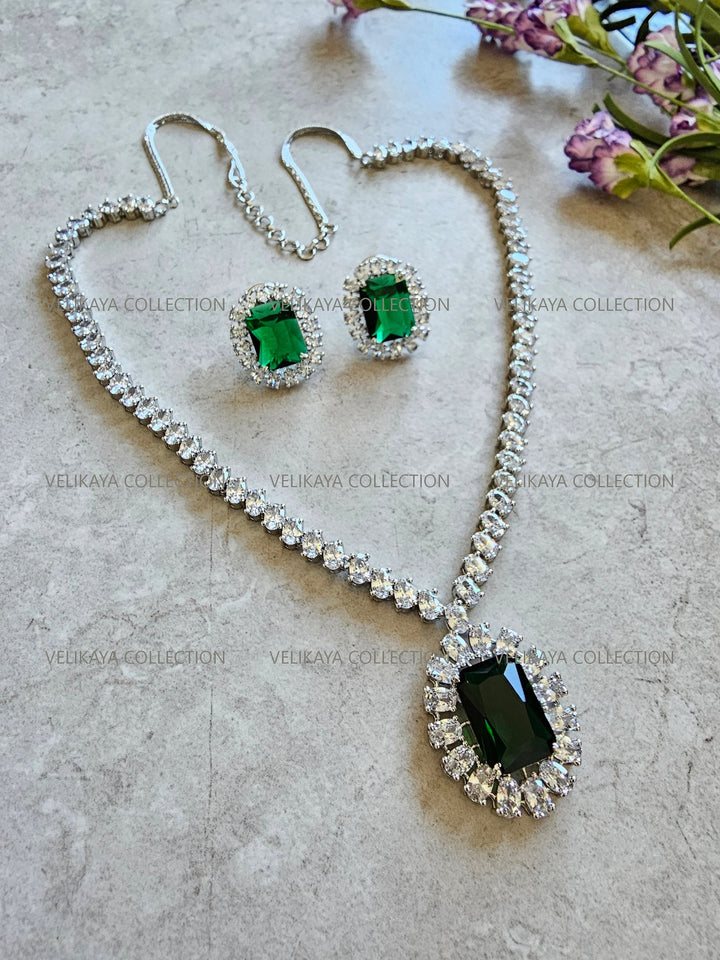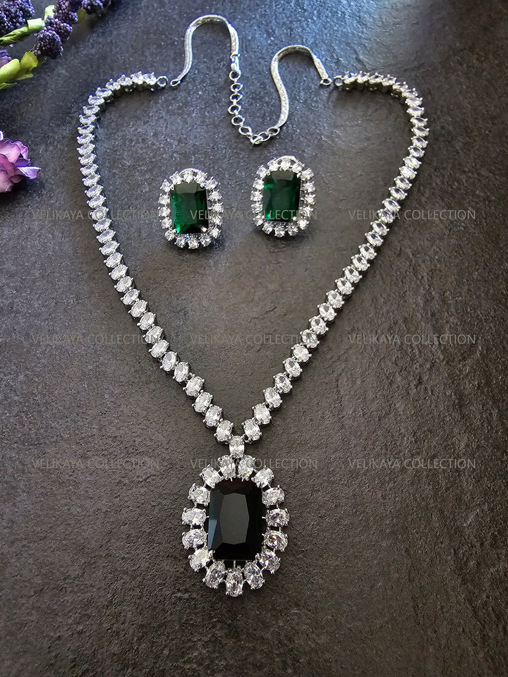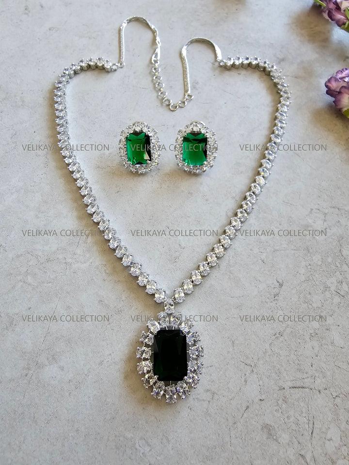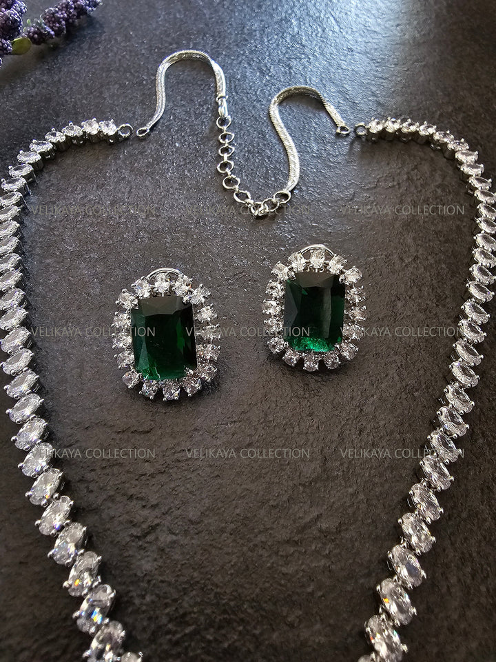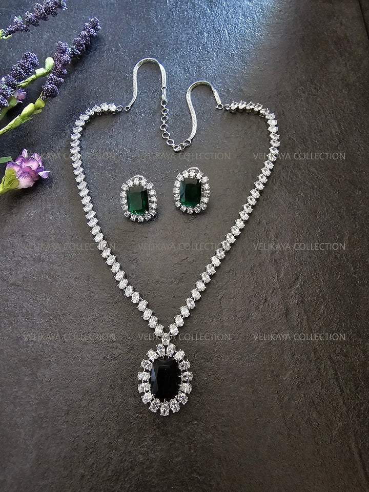 Handmade necklace with brilliant AAA grade cubic zirconia or American diamonds and premium silver plating, set in an elegant design.