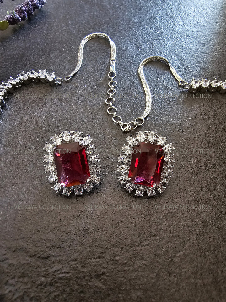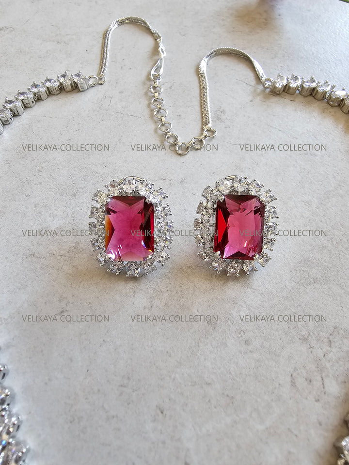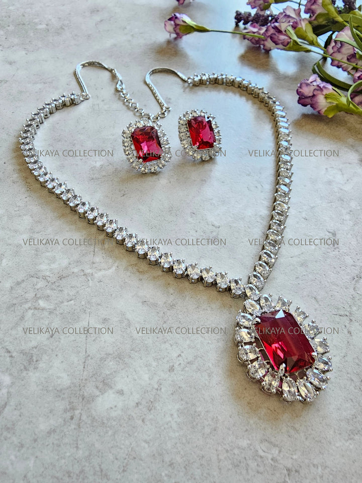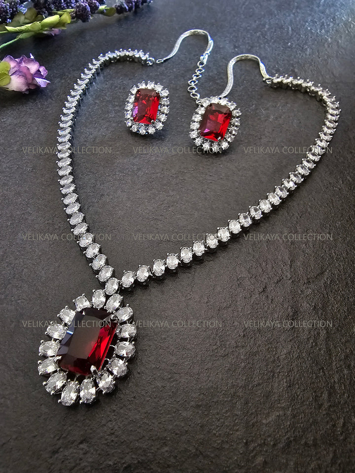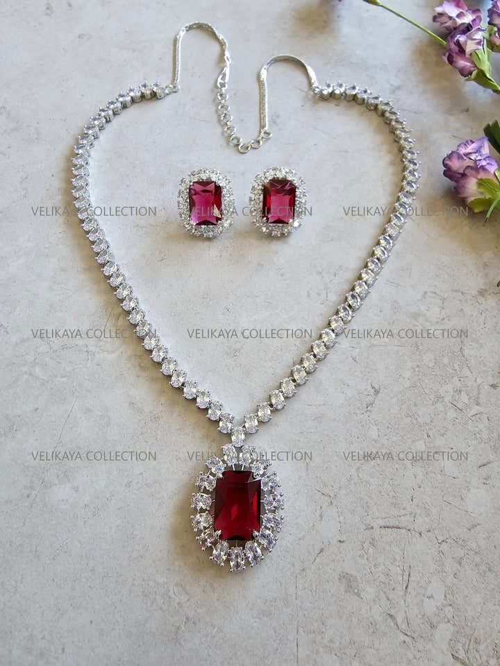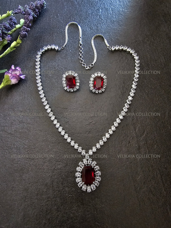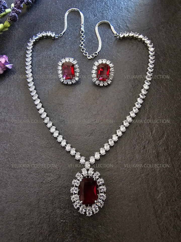 Handmade necklace with brilliant AAA grade cubic zirconia or American diamonds and premium silver plating, set in an elegant design.