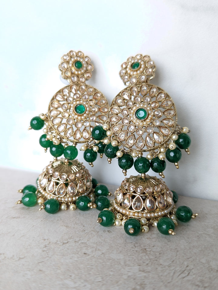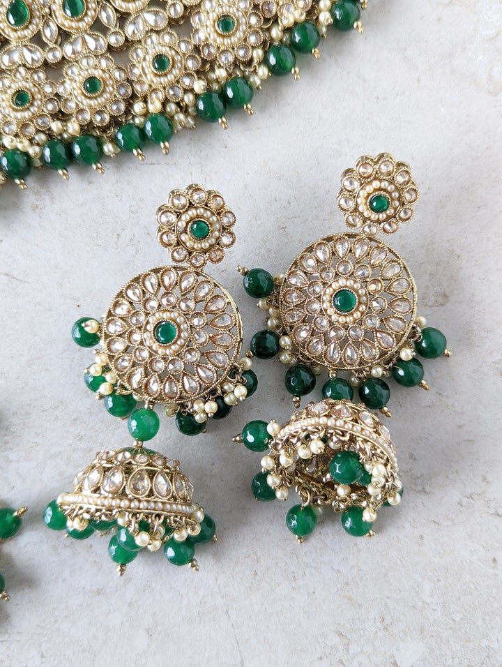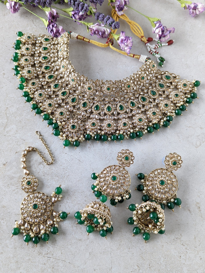 Jodha Emerald Green Choker Necklace Jhumkas & Tikka