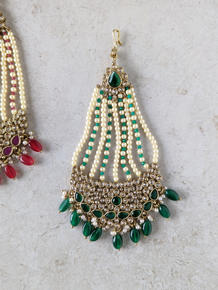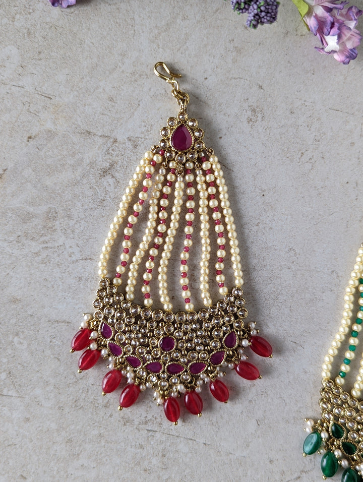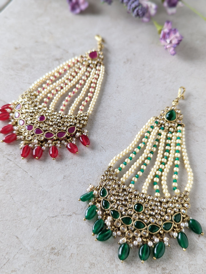 Kalki Antique Gold Plated Pearl & Polki Pasa - Red & Green