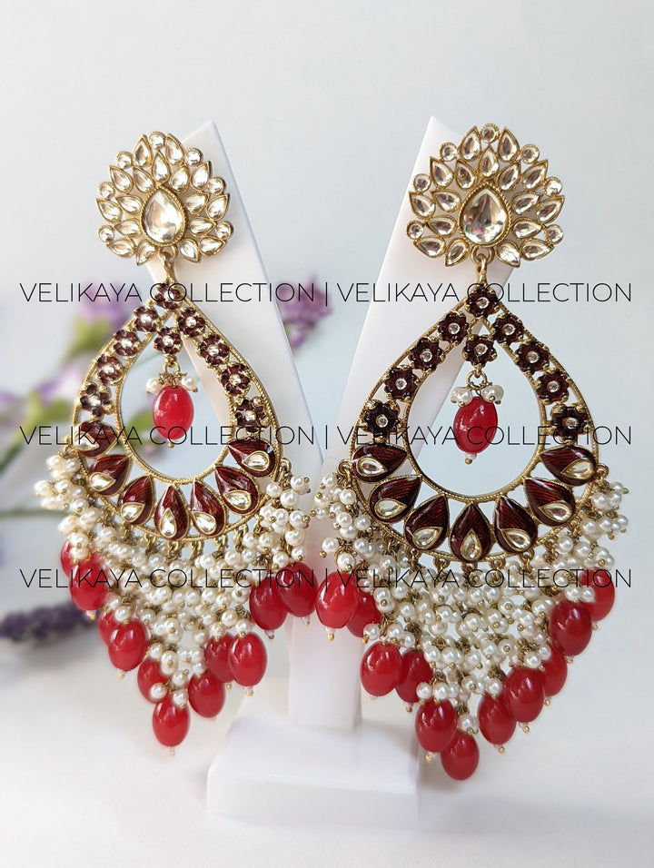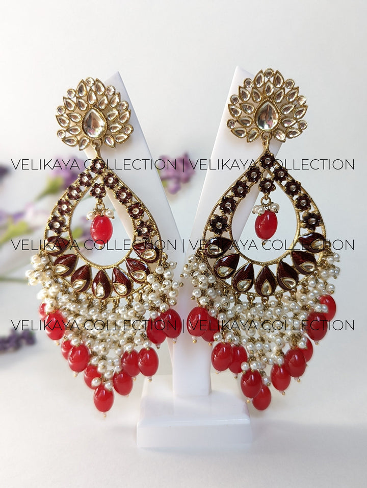 Light weight and beautiful chaandbali earrings in kundan meenakari style.