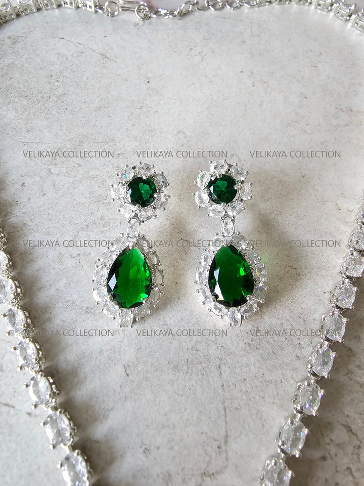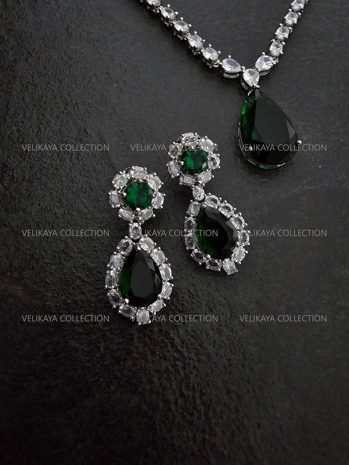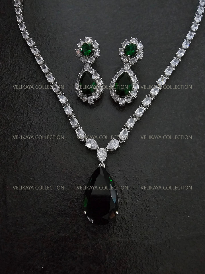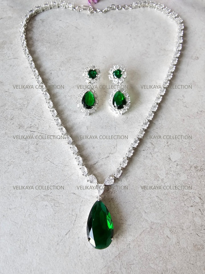 Mila Emerald Green Pendant CZ Diamond Necklace Set