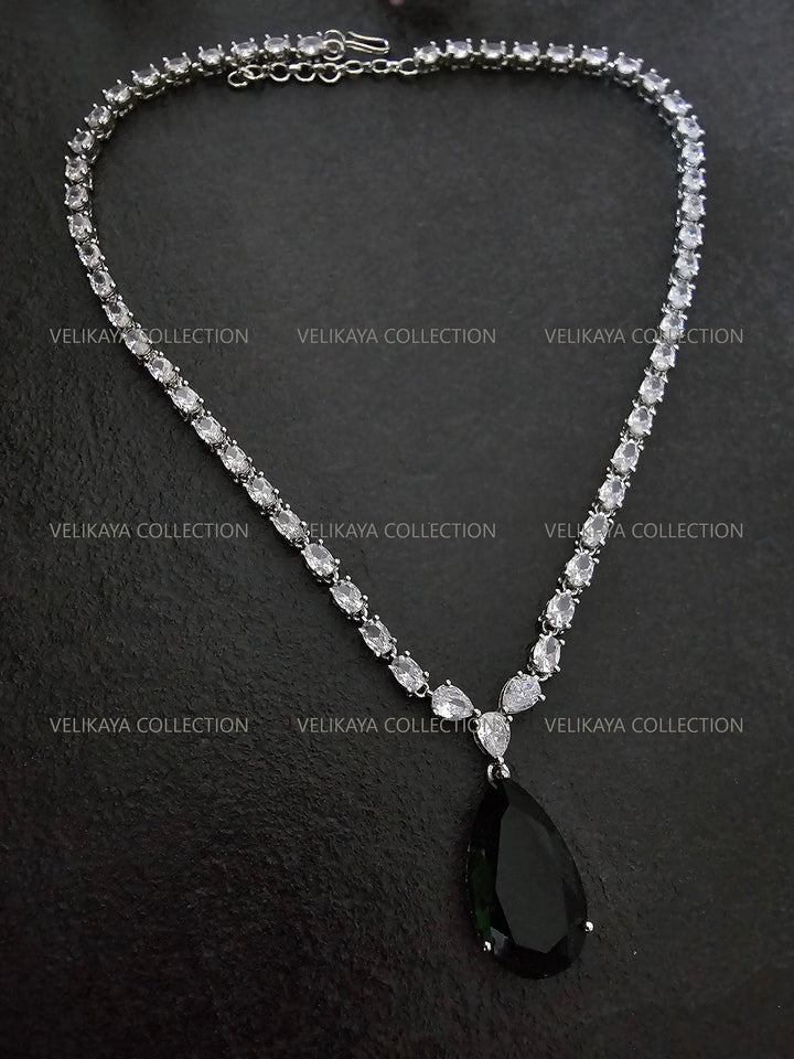 Handmade necklace with brilliant AAA grade cubic zirconia or American diamonds and premium rhodium plating, set in an elegant design.