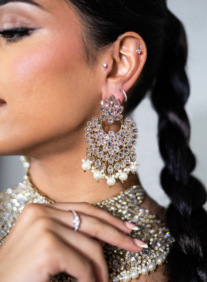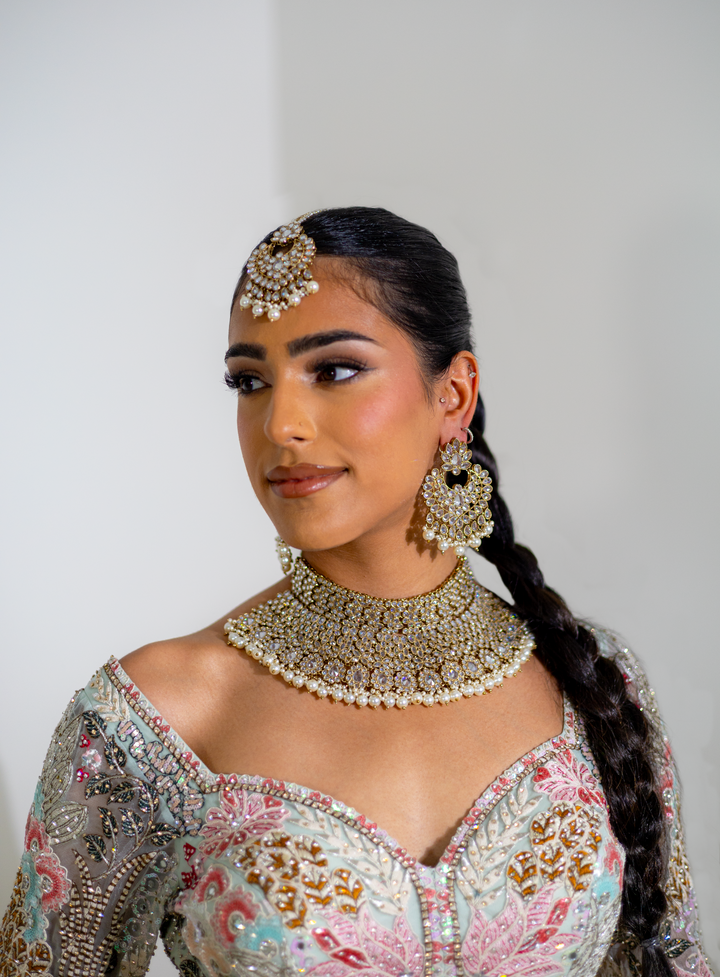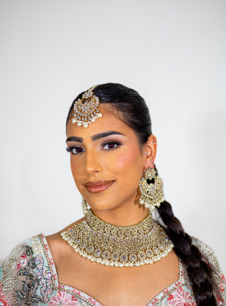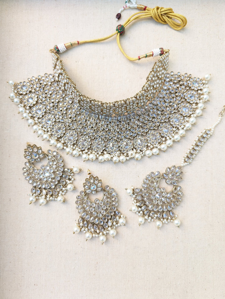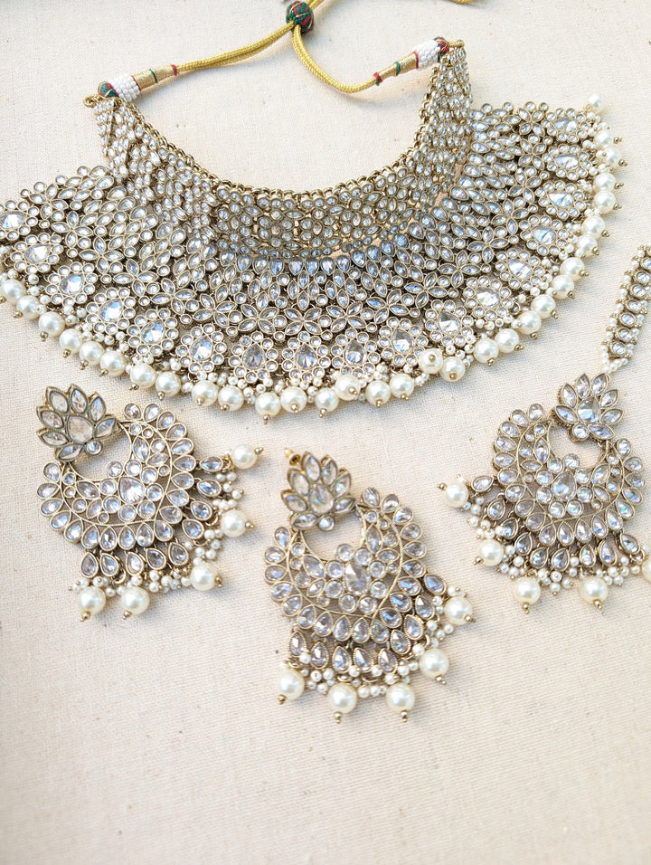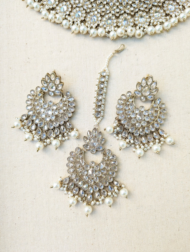 Nyka White Pakistani Bridal Necklace Chaandbali Tikka