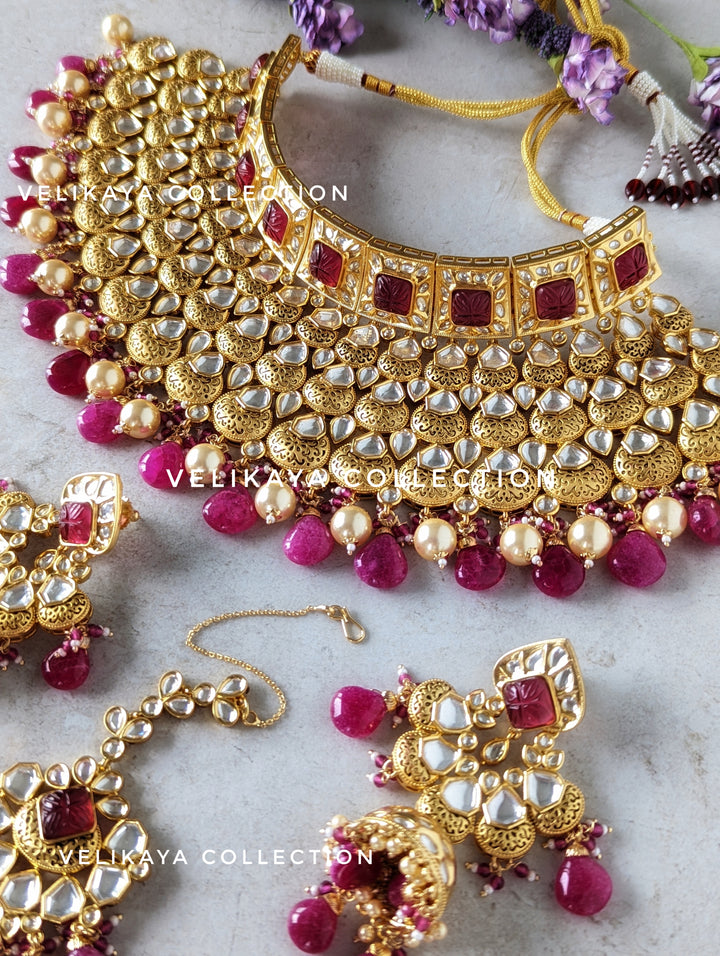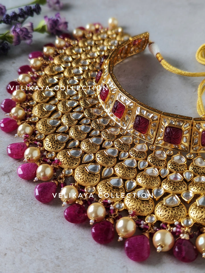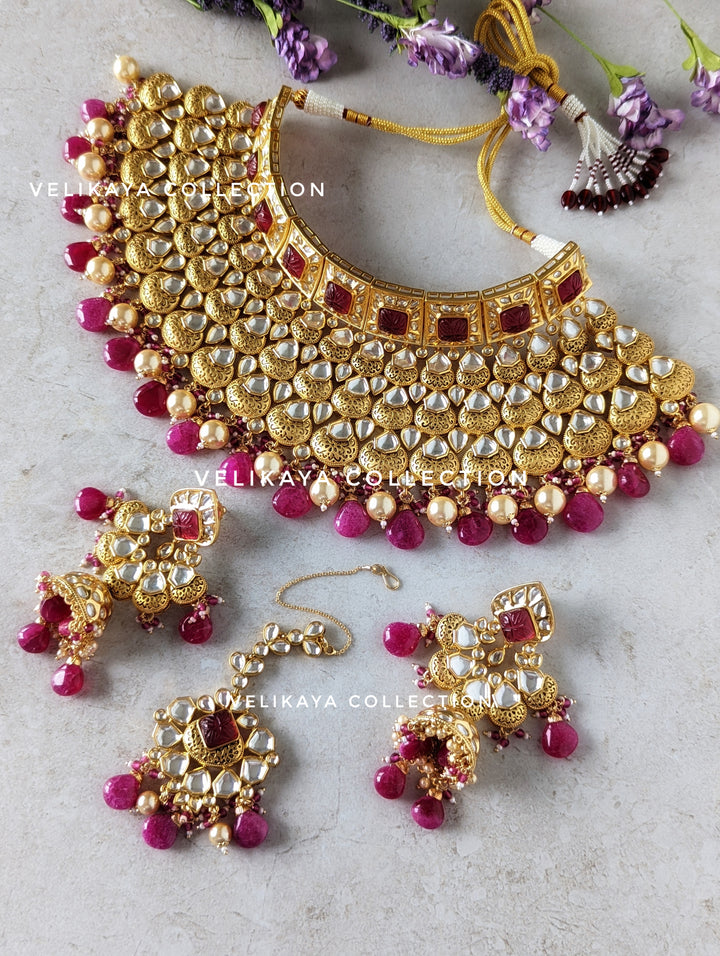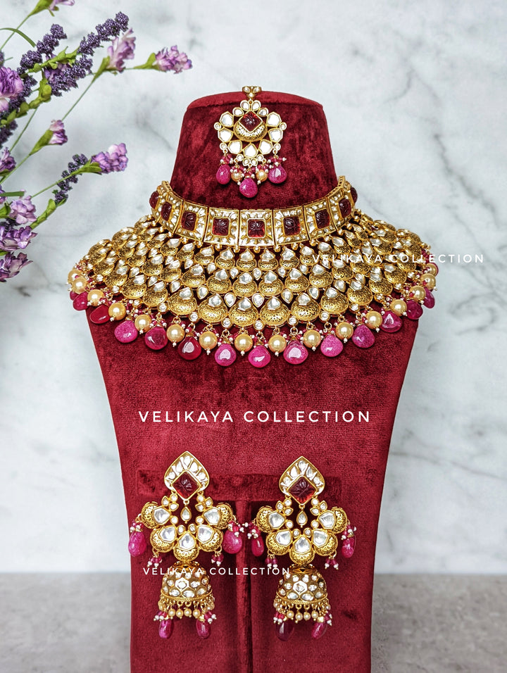 Ruby Pink Kundan Choker Necklace Set