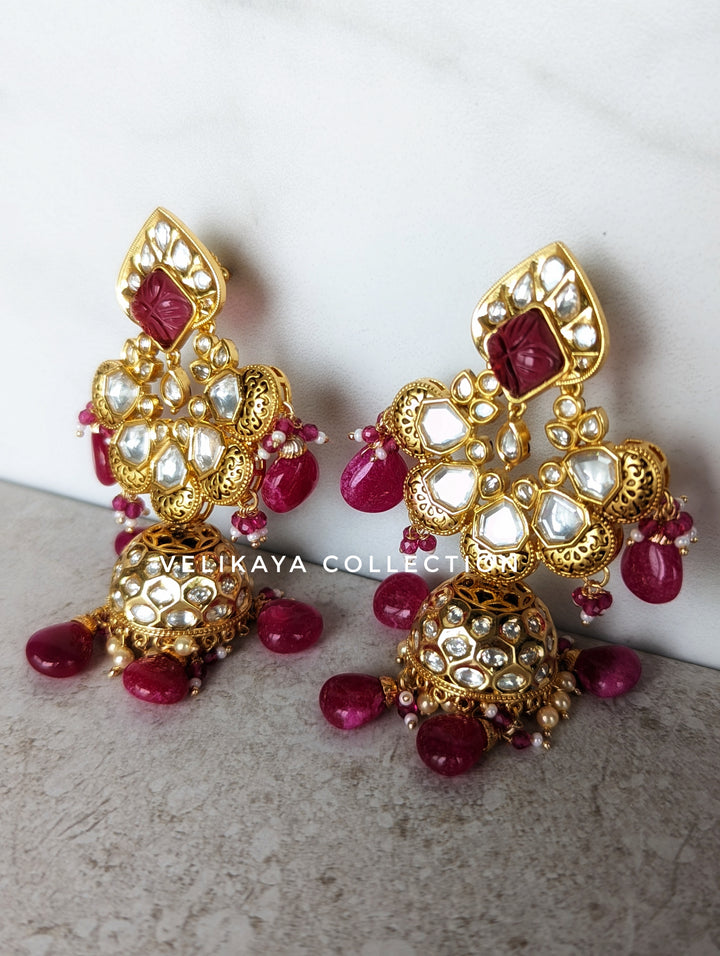 Be the first to own this unique and original design of premium kundan choker set with superior polki imitation stones. High quality gold plating and pinkish red imitation stones. Craftsmanship and quality so high, that rivals jewelry made of precious metals. (Please note that we sell high quality imitation jewelry only.)