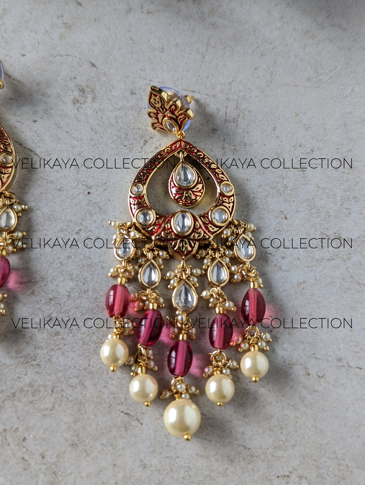 Sonali Red Gold Plated Kundan Meenakari Earrings