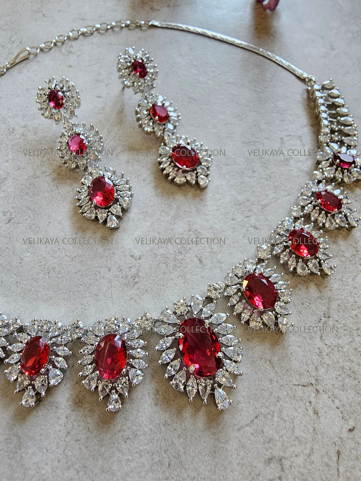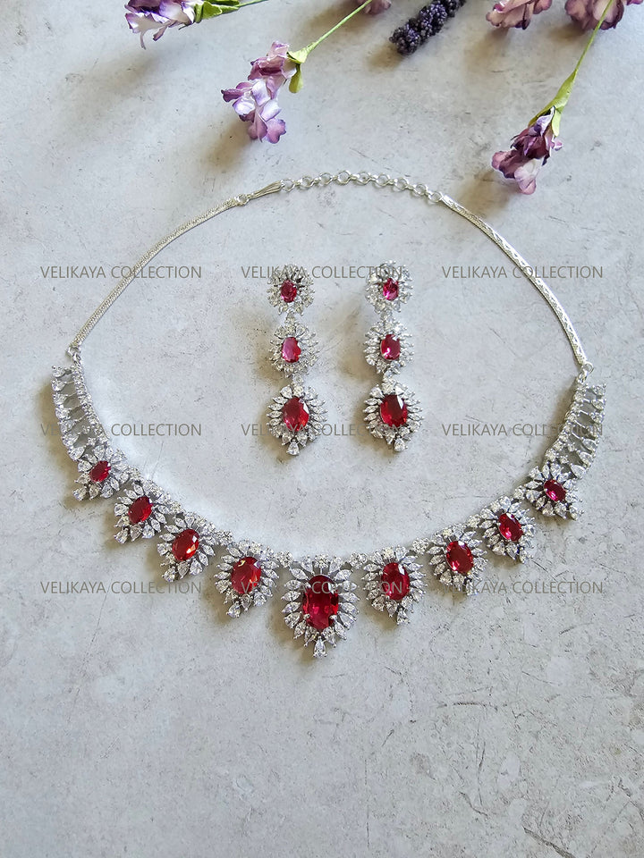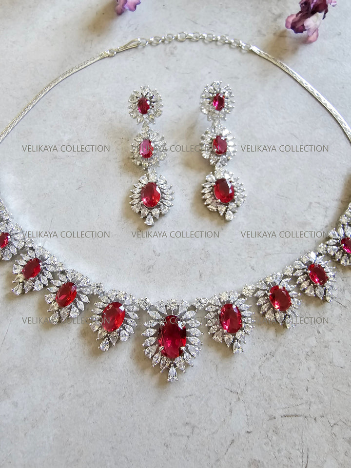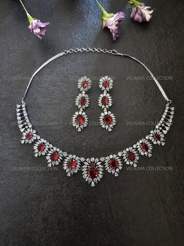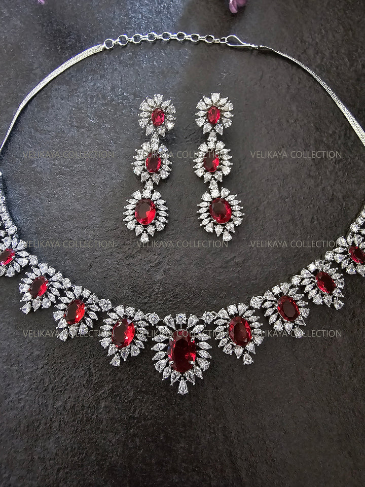 Handmade necklace with brilliant AAA grade cubic zirconia or American diamonds and premium silver plating, set in an elegant Victorian design.