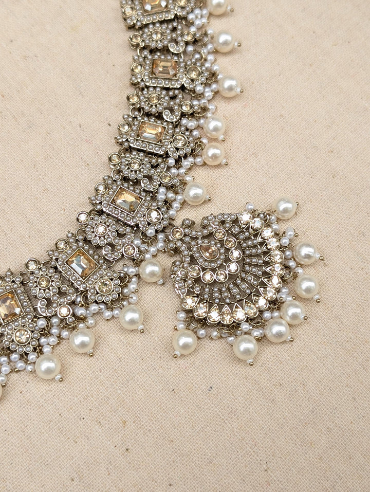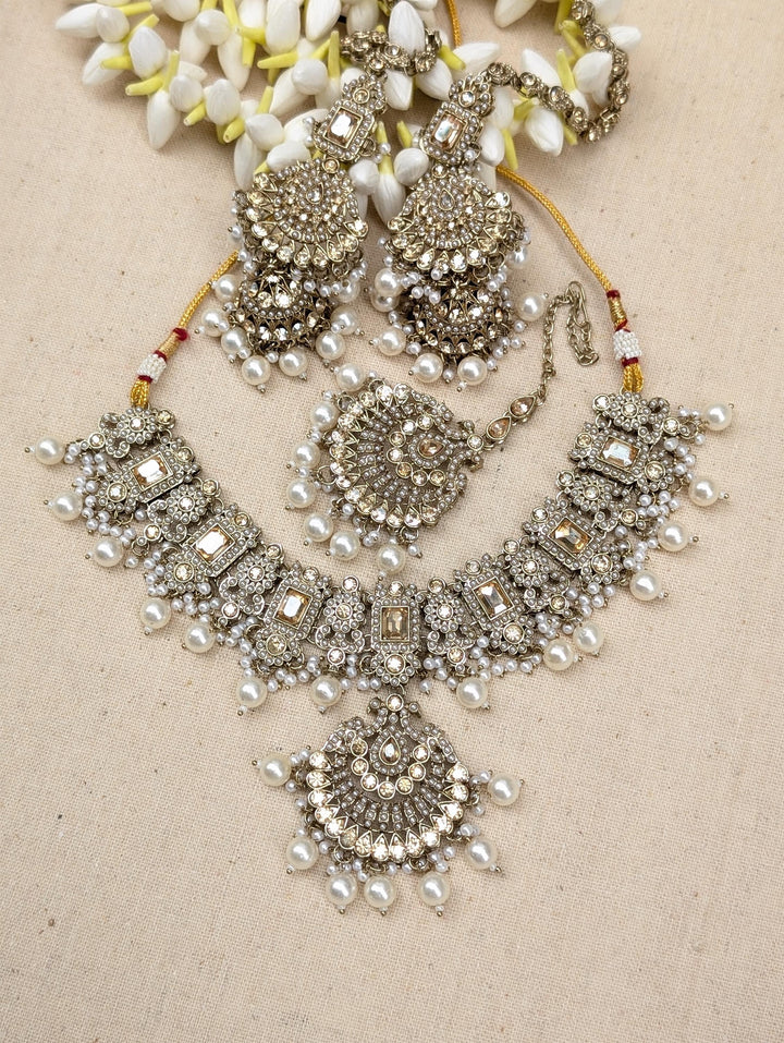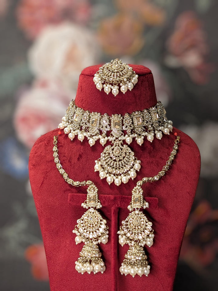 Victorian Pearl Choker Necklace & Jhumke with Ear Chain