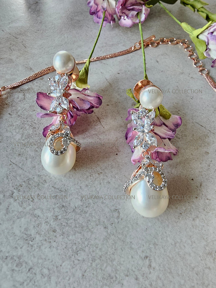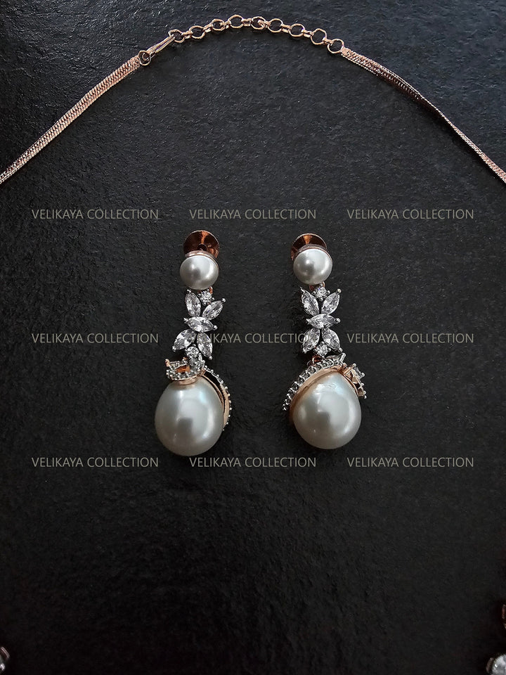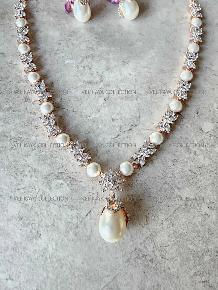 Handmade necklace with brilliant AAA grade cubic zirconia or American diamonds and premium rose gold plating, set in an elegant design.