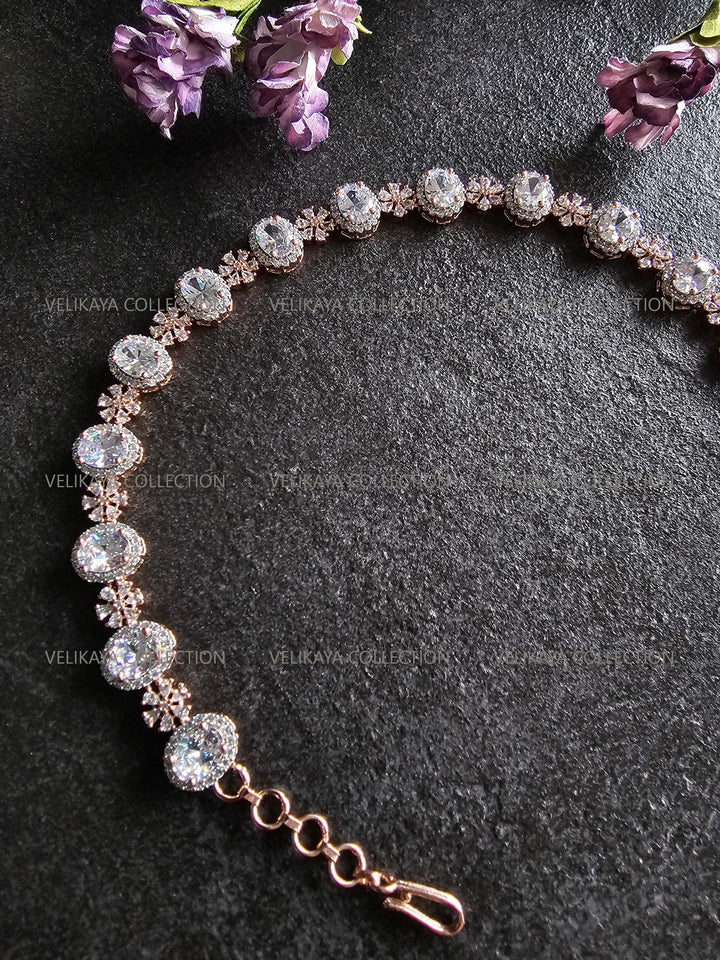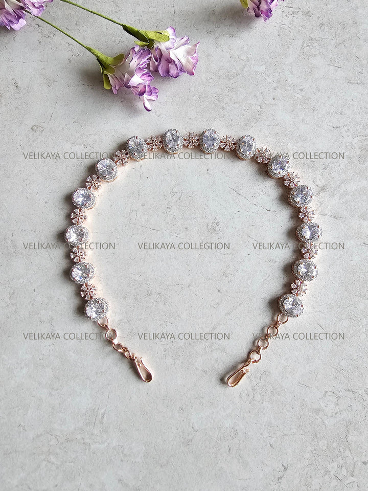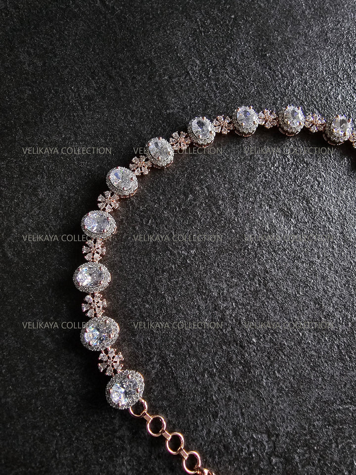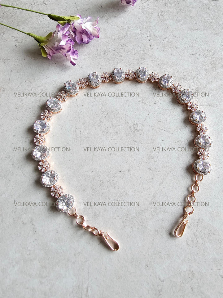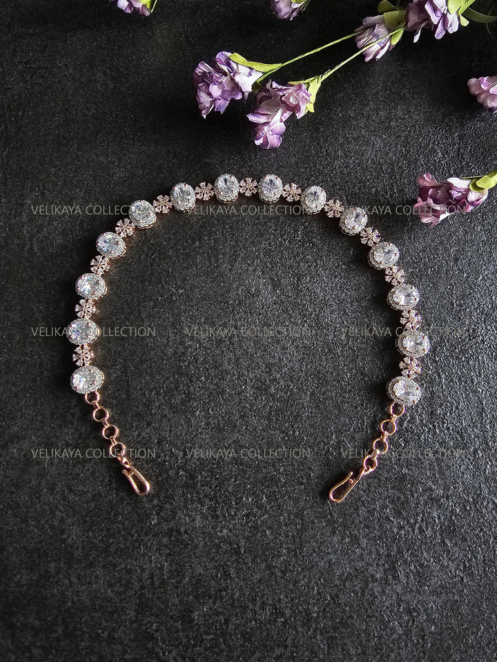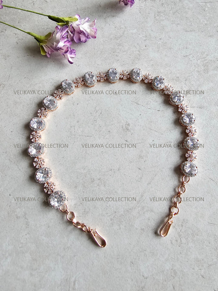 Premium American Diamond CZ sheeshphool / Bridal headband / Wedding hair accessory / Bridal hair jewelry. Made with stunning AD stones and rose gold plating. Perfect for a statement look at an Indian Pakistani wedding.
